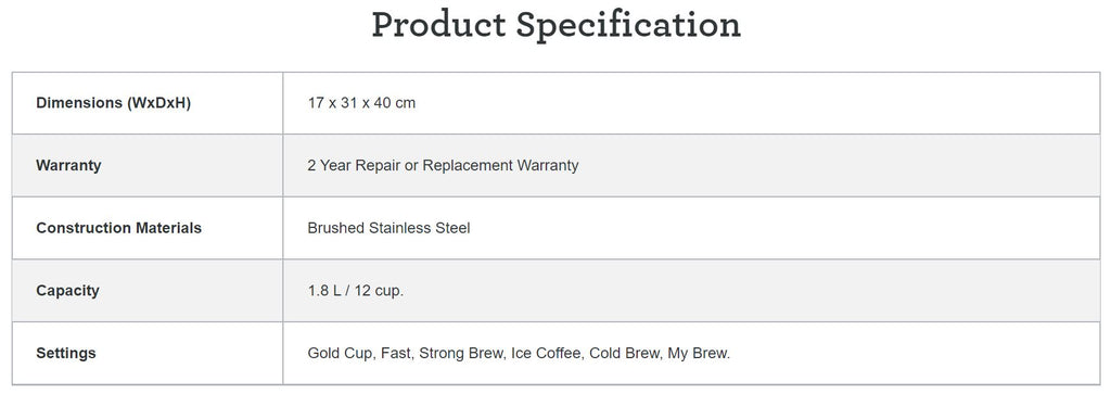 In Gold Cup preset mode, The Breville Precision Precision Brewer™ automatically adjusts the water temperature and brew time to meet the standards set by the SCA.